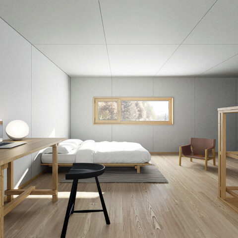 A modern minimalist layered panel in dried spruce wood. The large-format panels are created with smooth lamellas without chamfers at the joints. For proponents of wooden interiors, but in a modern form. The unpainted panels allow the walls to breathe.