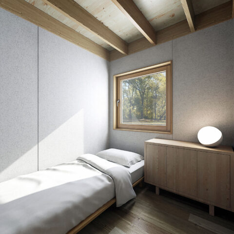 A package of modern, solid timber window frames that provide unrivalled quality and aesthetics over plastic windows. Chambered, double-glazed windows are appropriate for the use of a leisure building in cold weather. The windows provide high durability, structural rigidity and have greater weather resistance than PVC. The package includes a large PSK (German: Parallel-Schiebe-Kipp-Tür) tilt and slide window and a wooden, glazed exterior door.